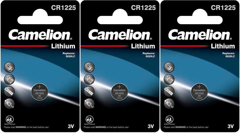 CR-обозначение определяет тип и напряжение батареи – литиевый состав элемента с напряжением в 3 В (3 Вольт). Цифра «1225» определяет габариты батарейки – её диаметр (12.5 мм) и высоту (2.5 мм).