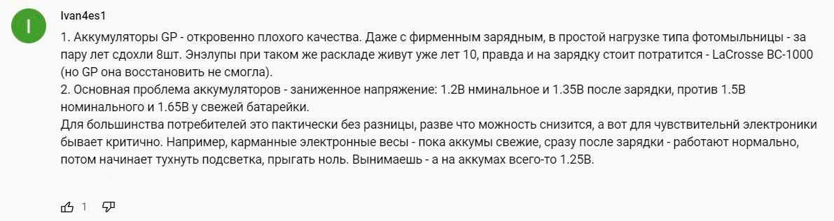 Батарейки и аккумуляторы GP стали в России самым продаваемым брендом, опередив более дорогие. Причина — умеренная цена, продуманная маркетинговая политика, а главное — правильное выстраивание отношений B2B. Обеспечивая выгодные условия торговым сетям, GP активно внедряет свои устройства на полки магазинов. Качество приведённых в обзоре аккумуляторов вполне сносное, а ёмкость в 1000 мА-ч является золотой серединой для большинства устройств.