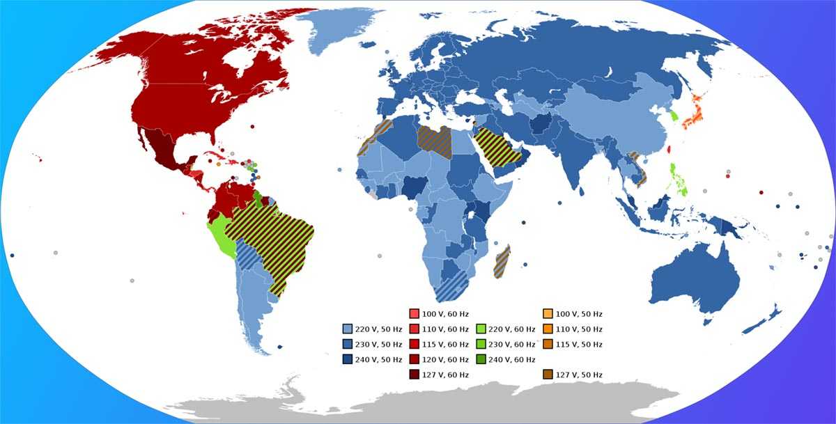 Кроме самого способа подключения отличались и основные параметры проводимых электросетей. В разных частях света использовали разные напряжение и частоту, что делало невозможным подключение заграничных приборов даже после смены вилки.