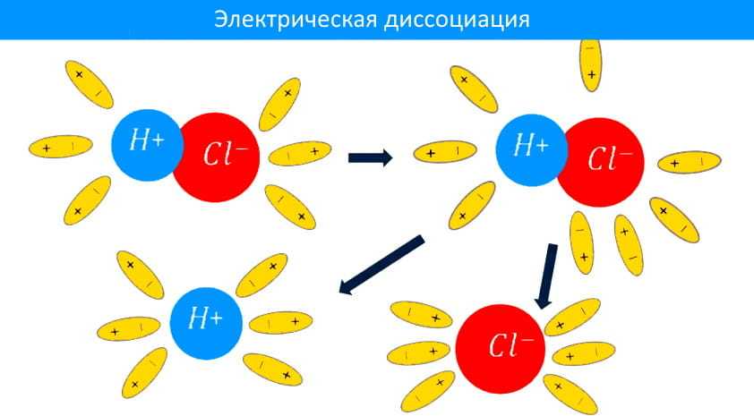 Процесс распада электролита на ионы называется электрической диссоциацией. При диссоциации в воде электролиты диссоциируют на положительно и отрицательно заряженные ионы. Под действием электрического поля, положительно заряженные ионы движутся к отрицательному полюсу источника тока (катоду) и называются катионами, а отрицательно заряженные – к положительному полюсу (аноду) и называются анионами. Таким образом электролиты обладают электронной проводимостью.