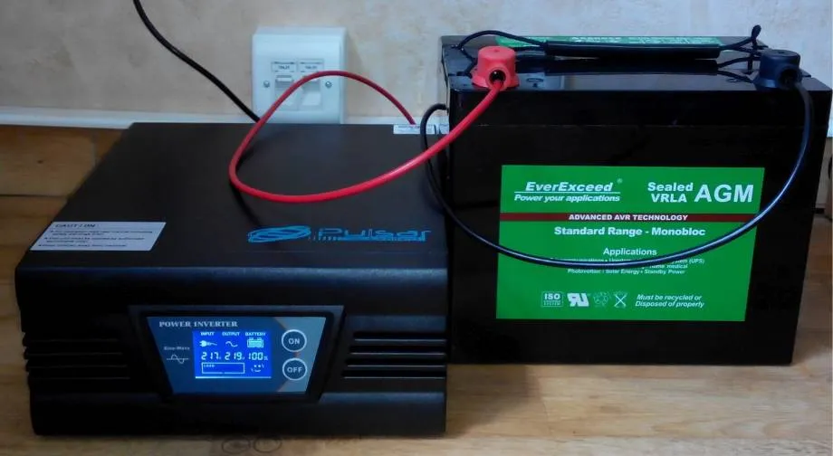 - Аккумулятор или батареи – нужны для накопления электроэнергии, которую, после отключения питания, они будут отдавать в нагрузку.