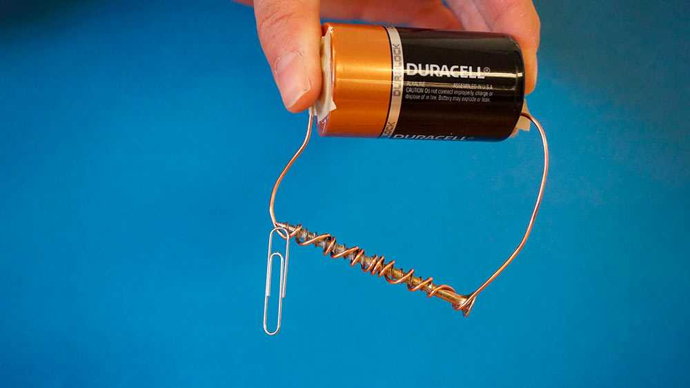 Важно! Чем больше болт или гвоздь и количество намотанной проволоки, тем сильнее у электромагнита будет притяжение. Таким прибором можно будет притягивать и поднимать не только мелкие предметы, но и достаточно крупные инструменты