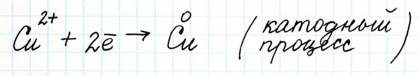 Катод – электрод, на котором происходит восстановление (медная пластинка):