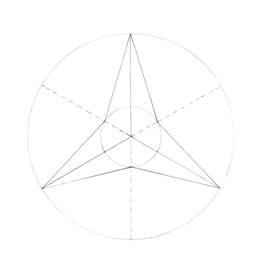 Соединяем эти точки с вершинами лучей и получаем идеальную трехконечную звезду!