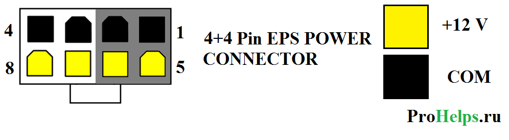 Материнские платы может быть с 4-контактный разъем или 8-контактный разъем 12 вольт. Многие источники питания оснащены 4+4-контактный 12 вольт кабель, который совместим с 4 и 8 контактами материки. А 4+4 кабель питания имеет два отдельных штыря 4 штук. Если вы соедините их вместе, 4+4 кабель питания, то у вас будет 8-контактный кабель питания, который может быть подключен к 8-контактный разъем. Если вы оставите две части отдельно, тогда вы можете подключить один из штекеров 4-контактный разъем материнской платы.
