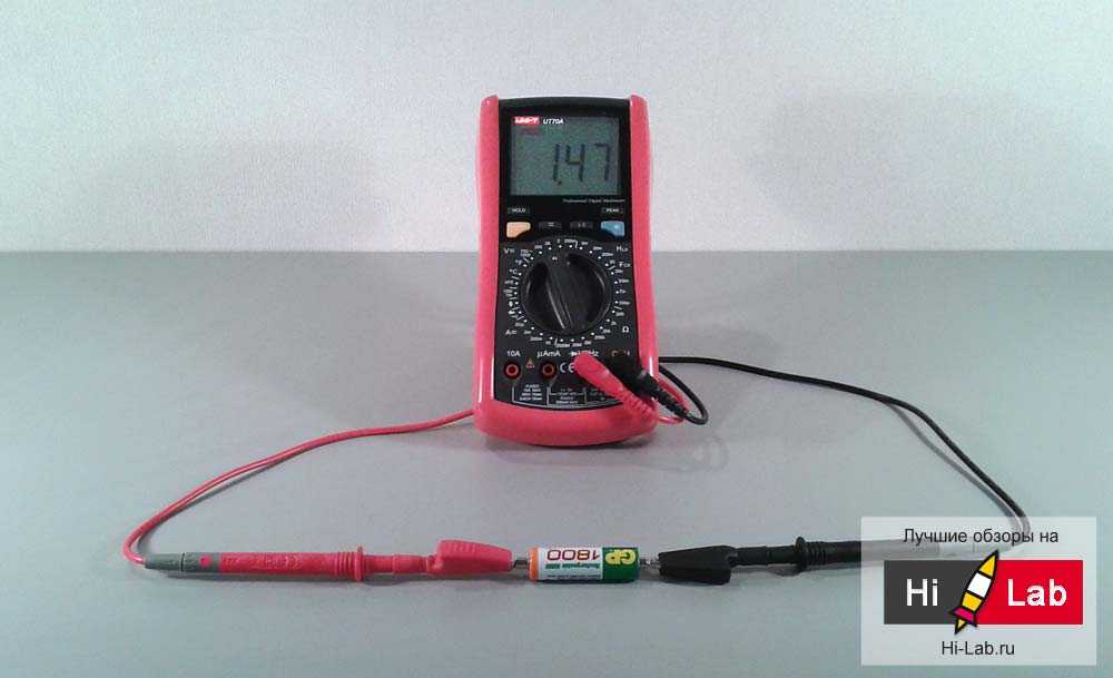 - Соединить щупы мультиметра с контактами тестируемой батареи.