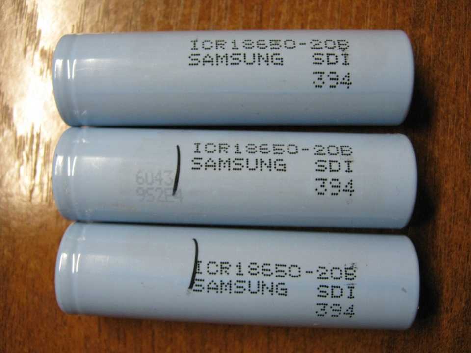 - Samsung INR18650-20R (литий-ионный аккум с марганцевой химией, высокотоковый, 2000mah).