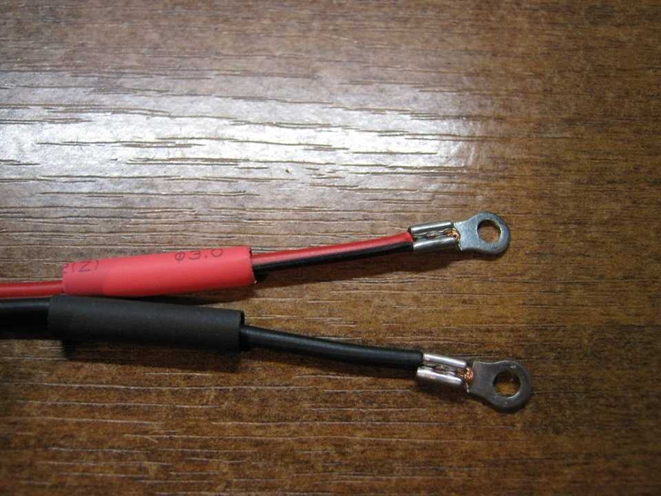 Накинул на провода термоусадку, сложил зачищенную часть провода вдвое и обжал клеммы