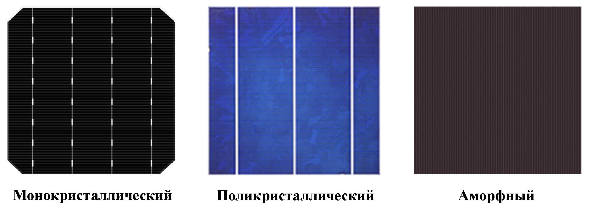 Рис. 2 Типы солнечных элементов