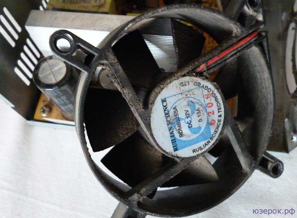 - Запыление кулера в блоке питания