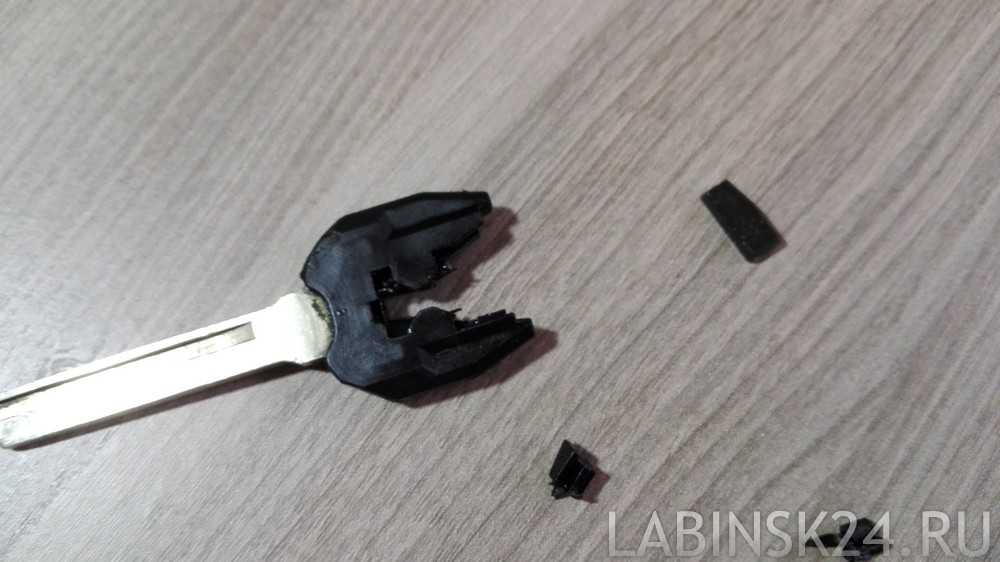 Старый ключ собираем уже без чипа, можно его заклеить, т.к. мы почти не повредили его снаружи, а можно изолентой как у нас обмотать, он все равно отправляется на «полку запасных».