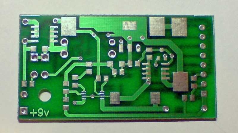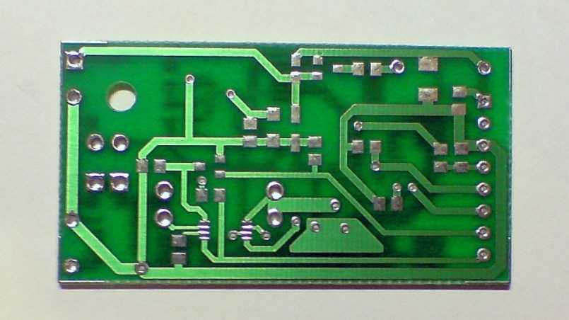Печатная плата разработанная для использования двухстороннего монтажа SMD, имеет размеры 52×28 мм.