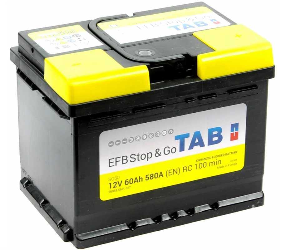 TAB EFB Stop & Go 6СТ-60.0 — один из лучших аккумуляторов в своей серии, хорошо держит емкость и продается по доступной цене. Заслуженно занимает третью строчку в рейтинге.