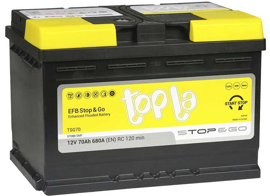 Topla EFB Stop & Go 112070 — продукт словенского производителя, отличающийся увеличенным ресурсом и способностью выдерживать повышенные нагрузки. Занимает первое место в рейтинге.
