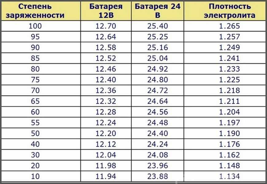 Плотность электролита неразрывно связана со степенью заряда. Скорость заряда можно контролировать не только по напряжению на его клеммах, но и по плотности электролита. Полностью заряженный механизм должен иметь значение плотности 1,27 ÷ 1,29 г/см3. Плотность электролита измеряется специальным прибором – ареометром.