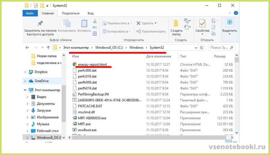 После исполнения нужно подождать 5 минут, затем будет готов итоговый отчет в корневой папке, название файла energy_report.html. Можно просматривать его через браузерное окно. В отчете видны списки текущих процессов, перегружающих батарею, особенности источников электропитания и другие функции. В разделе о батарее можно увидеть две строчки – данные о расчетной емкости и последней абсолютной зарядке.