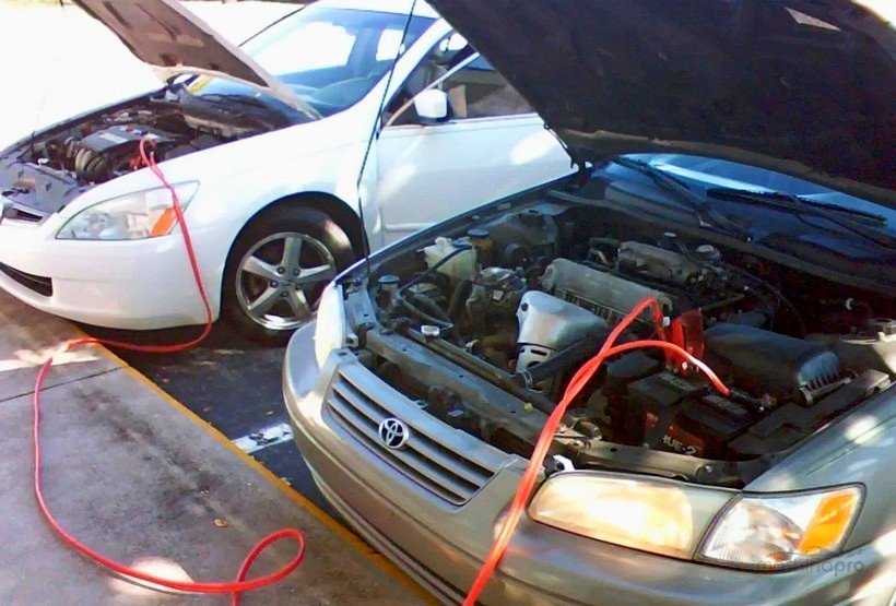 проводами батареи двух машин: плюс с плюсом, минус с минусом. Мы подключили