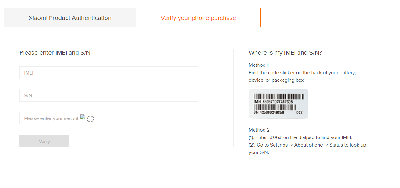 1. Итак, для использования этого метода вам нужно перейти на https://www.mi.com/verify/#imei_en (или китайский веб-сайт https://order.mi.com/service/imei)