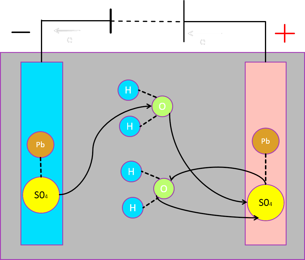Рисунок 1 – Принцип работы свинцово-кислотного аккумулятора