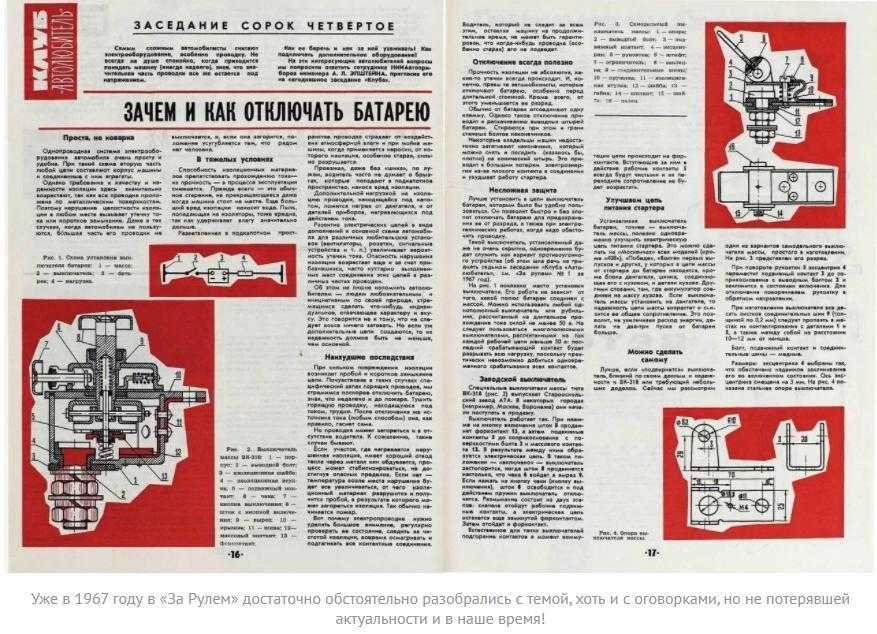 Эти приборы не только защищали АКБ от «саморазряда» и обесточивали бортовую сеть на время стоянок, но и совершенно неожиданно стали неплохим противоугонным устройством. Конечно найти это выключатель было не сложно, но злоумышленник тратил на это время и довольно часто отказывался от своих намерений из опасений быть застигнутым на месте преступления.