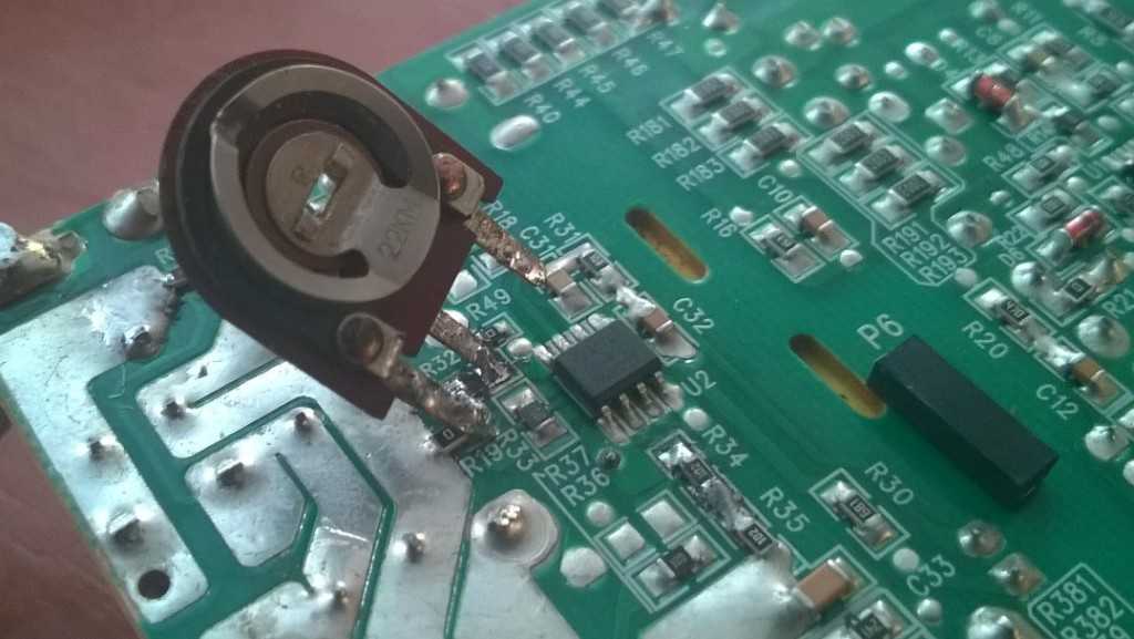 Достаем из закромов переменный или подстроечный резистор на 22 кОм и настраиваем его на 18 кОм. Впаиваем его на место предыдущего.