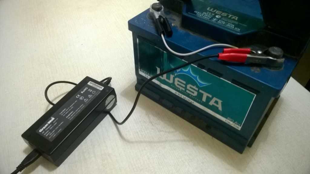 Напрямую сразу подключать блок питания ноутбука клеммам АКБ нельзя. Напряжение на выходе составляет около 19 В, а сила тока около 6 А. Силы тока для зарядки 60 А/ч аккумулятора достаточно, а что делать напряжением? Тут есть варианты.