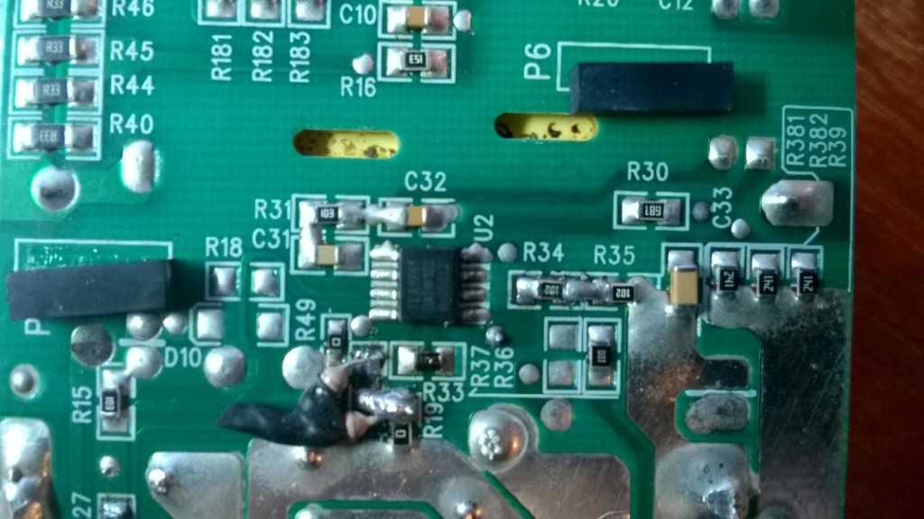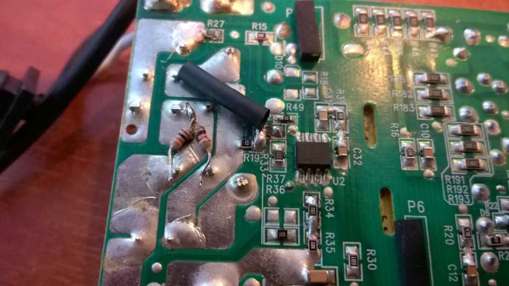 Выпаиваем этот резистор и измеряем его сопротивление – 18 кОм.