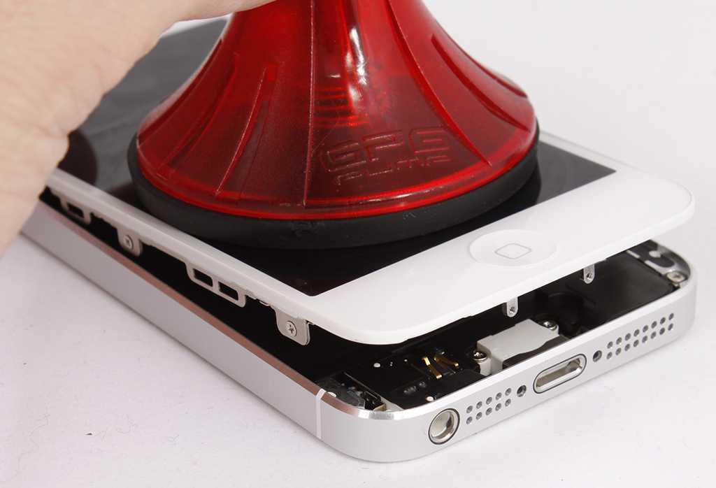 Расположите присоску на дисплее IPhone и, удерживая гаджет в руках, открепите заднюю крышку от экрана.