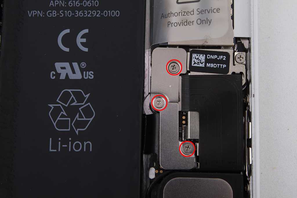 Найдите заглушку шлейфа аккумулятора и открутите три её винта, как показано на рисунке: