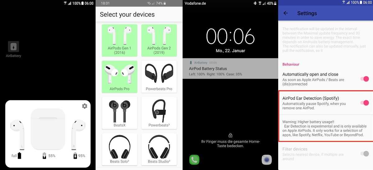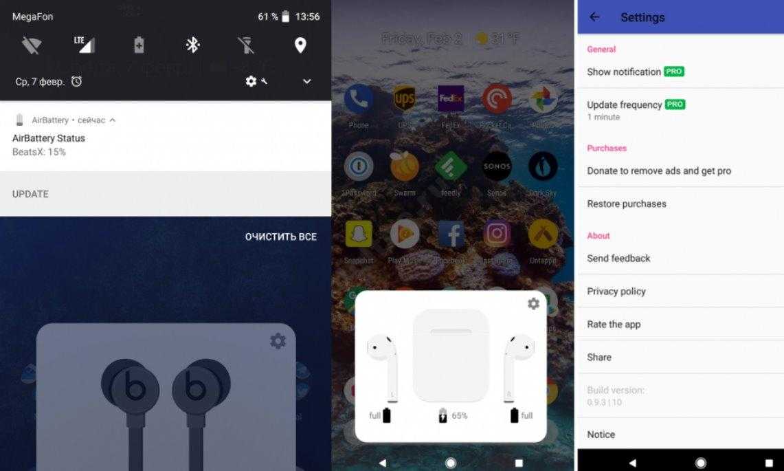 Увидеть батарею AirPods на Android