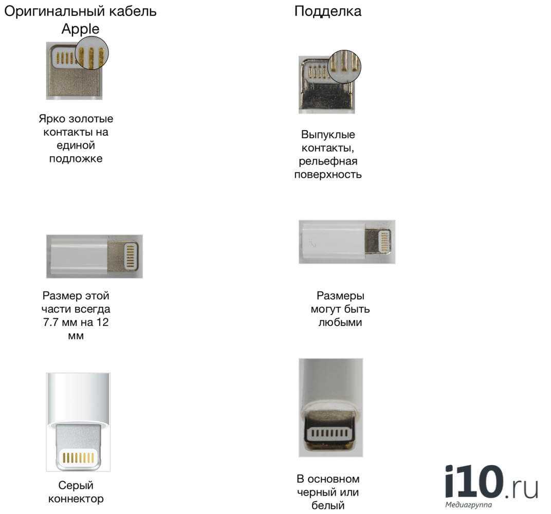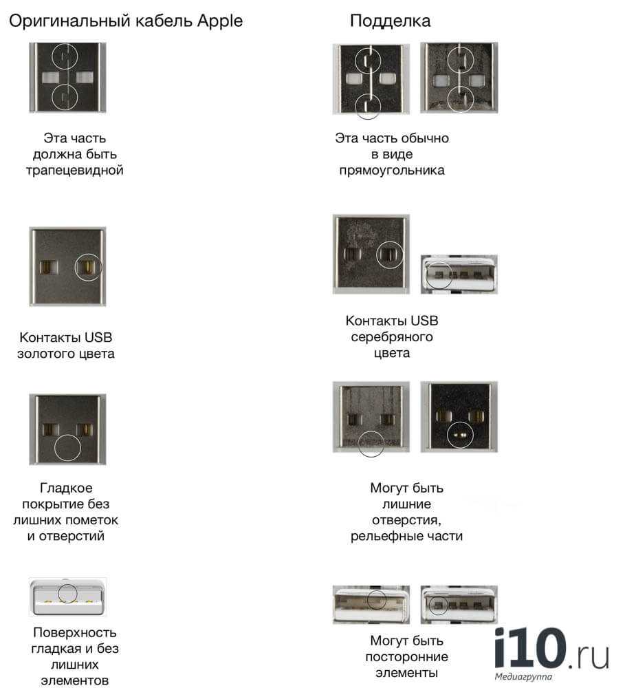 Обратите внимание на USB-коннектор. Эти советы помогут вам отличить подделку от оригинального кабеля