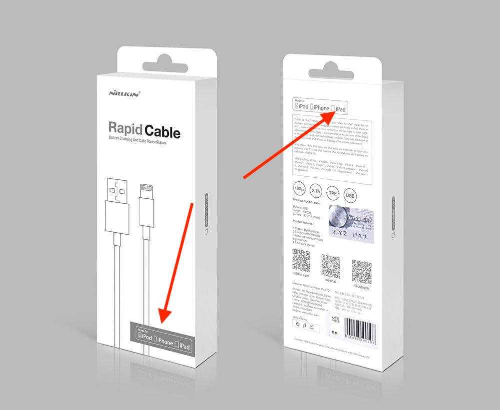 Во-первых, на коробке настоящего кабеля для iPhone должна быть эмблема MFi — Made For iPhone («сделано для iPhone»). Если ее нет, не берите этот продукт. Apple сертифицирует только те кабели, которые проходят строгий отбор качества, даже если речь идет о стороннем производителе.