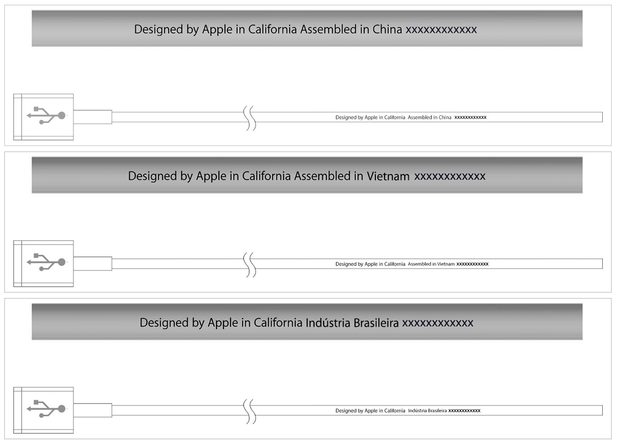 Если же мы говорим о кабеле от самой Apple, на нем обязательно должна красоваться надпись «Designed by Apple in California», а также «Assembled in China», «Assembed in Vietnam» или «Indústria Brasileira». После этой надписи на оригинальном кабеле вы найдете 12-значный серийный номер. Весь этот текст вы найдете на оригинальном кабеле на расстоянии около 18 сантиметров от USB-коннектора.