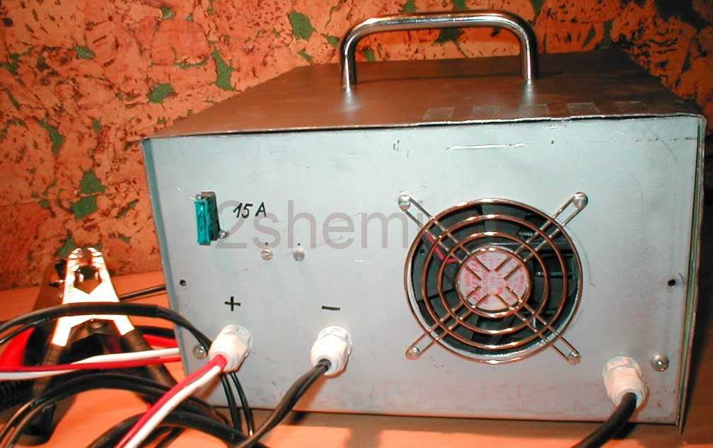 Регулятора зарядного тока настраивают подбором резистора R2 с учетом того, чтобы при нулевом сопротивлении R1 зарядный ток был максимальным. Для настройки схемы регулятор зарядного тока сначала подключают зарядное устройство в сеть, затем подключают к нему полностью заряженный аккумулятор и с помощью R13 добиваются открывания транзистора VT2 (на коллекторе транзистора должно быть напряжение порядка 0,6… 1 В) и закрытия тиристора VS2. На этом завершена настройка зарядного устройства. Данноеавтоматическое зарядное устройство для автомобиля было давно собрано и успешно эксплуатируется вот уже 5 лет.