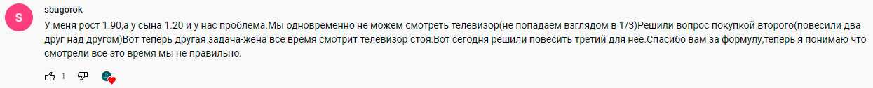Формула для расчета высоты очень простая и наглядная. Она учитывает как рекомендации производителей TV, так и рекомендации врачей.