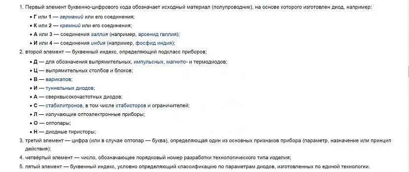 Советская маркировка диодовИсточник ru.wikipedia.org