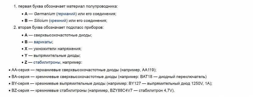 Маркировка диодов по европейскому принципуИсточник ru.wikipedia.org