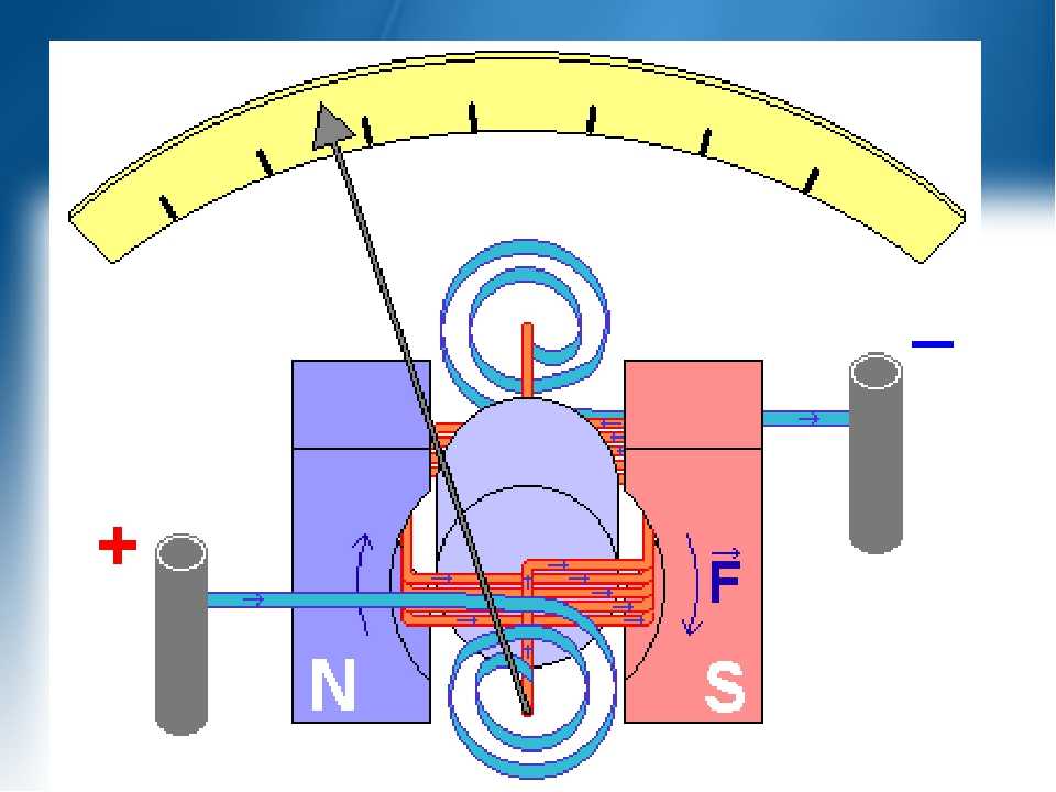 Поэтому вращающий момент (сила отклонения) стрелки будет зависеть только от силы тока протекающего через катушку. Угол отклонения стрелки мультиметра будет зависеть от жесткости спиральных пружинок.