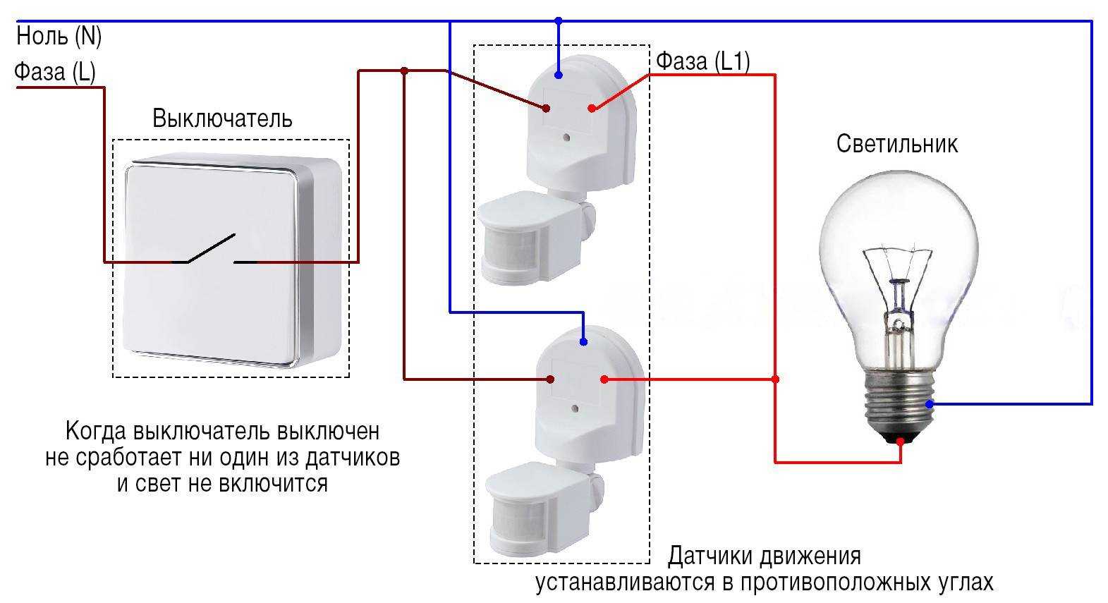Схема включения датчика движения с выключателем