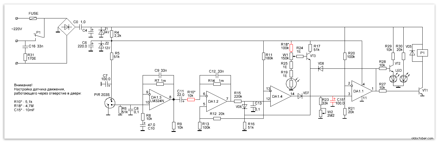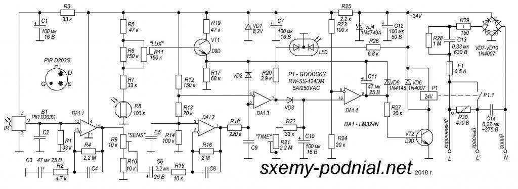 подобной двухпроводной схемы и данных датчиков движения: