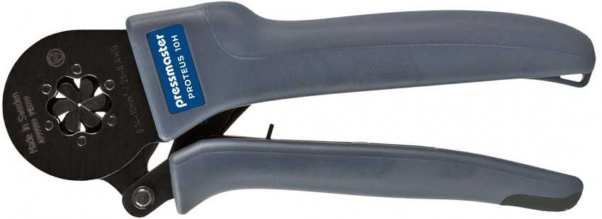 - ПКВк-10 — универсальный инструмент, который применяется для обжима проводников на 0,5-10 кв. мм. Но это в теории, ведь на практике ситуация обстоит по-иному. К примеру, для обжима кабеля от 6 «квадрат» и выше потребуется большое усилие, а если снизить силу опрессовки, качество контакта при обжиме коннекторов с небольшим сечением ухудшается. Плюс ПКВк-10 — в компактности и возможности подлезть даже в труднодоступное место для монтажа (при наличии такой необходимости). Инструмент лучше применять для обжима проводников до 4 «квадрат».