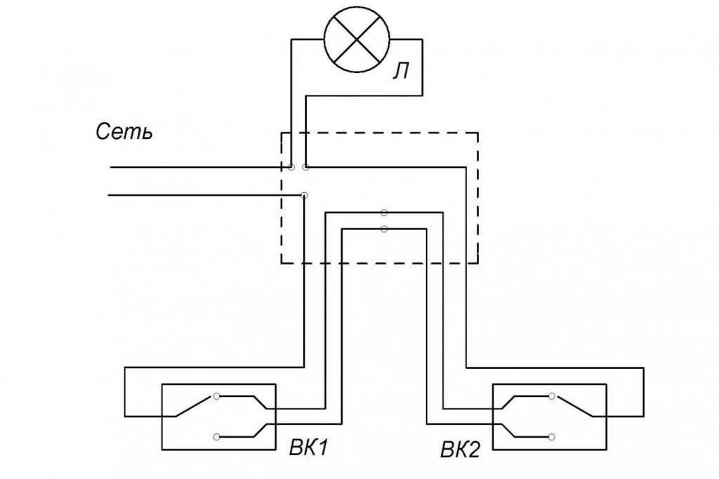 Однако проекты на управляющих точек применяются достаточно активно. При последующем переключении любого из выключателей, в произвольном порядке, светильник будет то выключаться, то включаться. Как уже было сказано выше, при отсутствии схемы контакты лучше вызвонить при разных положениях клавиши.