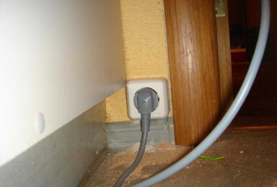 Подключение отдельно стоящей машины производится при помощи розетки, находящейся на расстоянии не более 1-1.5 м от неё. Удлинители при этом использовать крайне нежелательно. Во-первых, при этом получаются два дополнительных электрических соединения, а во-вторых, велика вероятность того, что в удлинителе вообще отсутствует цепь заземления.