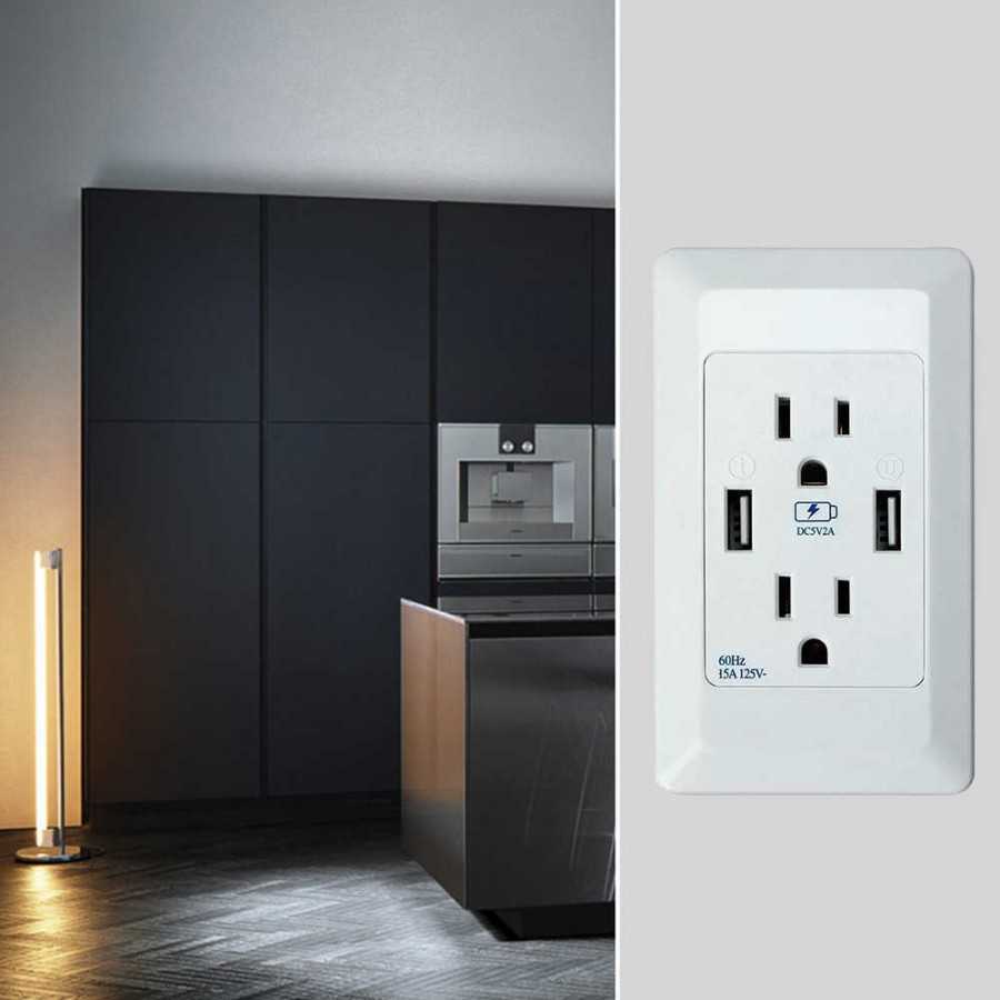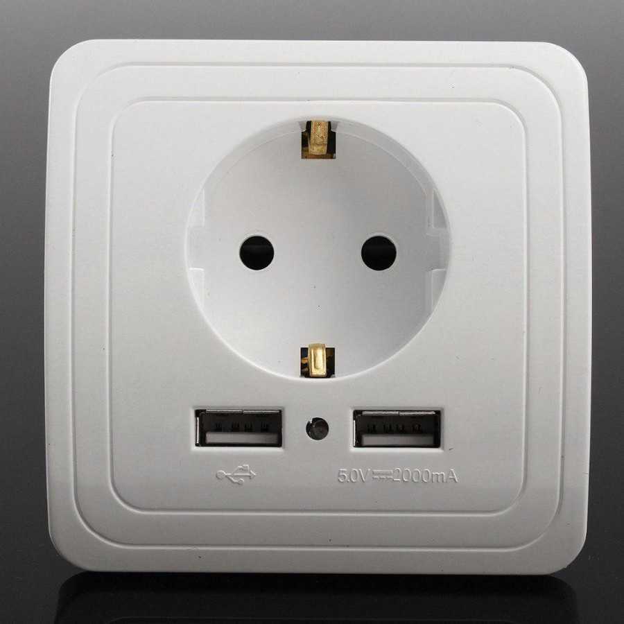 Как вы уже догадались, это обычная электрическая розетка на 220 вольт, которая дополнительно имеет встроенный источник питания 5 В / 2 А, позволяющий питать устройства через два USB-разъема, например им можете заряжать мобильный телефон, планшет или повербанк.