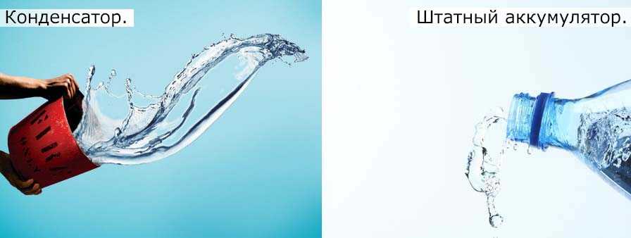Рис. 2. Конденсаторы и штатный АКБ как ведро и бутылка.