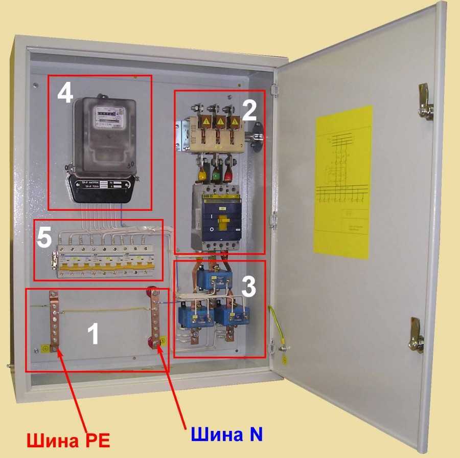 - дверца и корпус щитка должны быть заземлены и иметь «ушки», предназначенные для опломбирования;