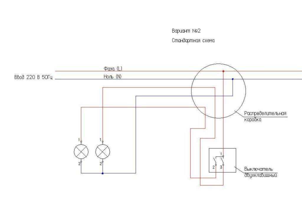 Схема подключения бра с веревочкой с одной и двумя лампами