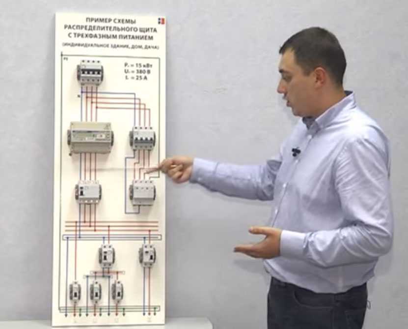 На вводе перед счетчиком — вводной автоматический выключатель, защищающий прибор учета и цепи внутри самого щитка. Далее счетчик.