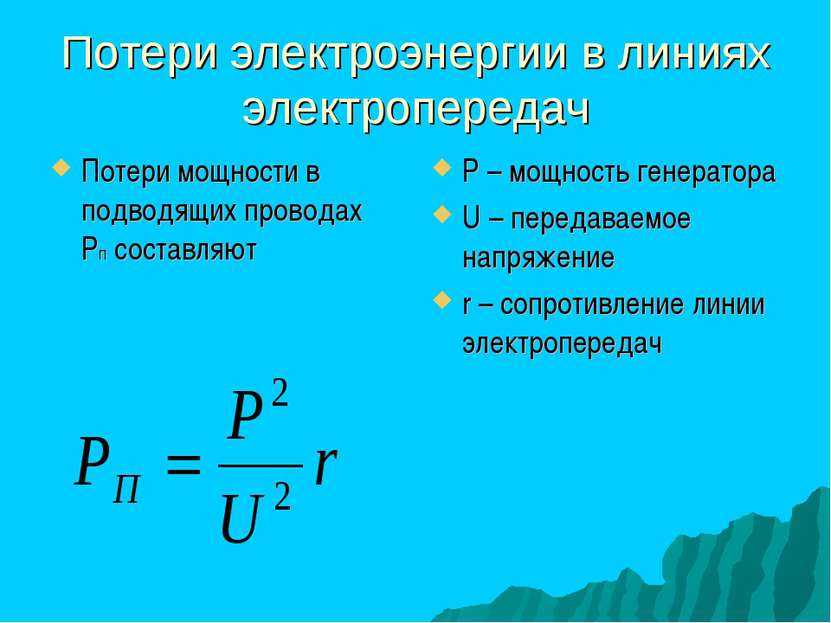 Подавляющая доля потребления электрической энергии приходится на низковольтное оборудование и приборы. Напряжение выше 1 кВ необходимо для питания электроприводов мощного производственного оборудования, горной техники, тяговых сетей электровозов. Однако для доставки электроэнергии к местам потребления используется оборудование (линии электропередачи и подстанции) значительно более высокого напряжения. Причина чисто экономическая. Потери электроэнергии при её транспортировке пропорциональны квадрату тока, а ток при той же мощности тем меньше, чем выше напряжение электропередачи. Поэтому глобальные распределительные сети имеют напряжение 110 кВ и выше, городские сети — 6/10 – 35 кВ, а непосредственно потребителям электроэнергия доставляется по воздушным и кабельным линиям 0,4 кВ.
