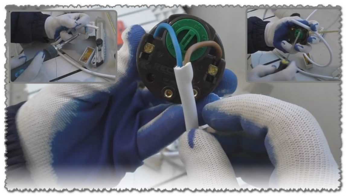 Теперь нужно подсоединить терморегулятор. Для этого подготавливаем провод с сечением 1,5 мм².